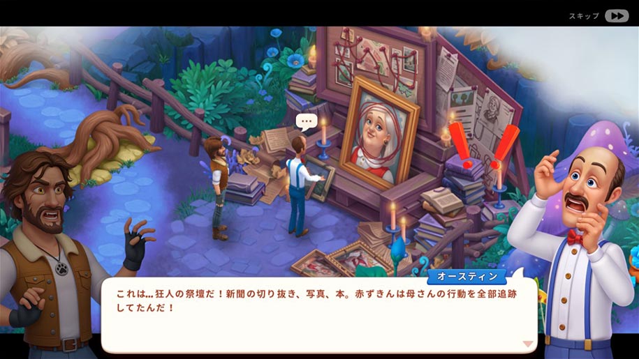 オースティンを手伝って赤ずきんからオリビアを救出して、グレイ刑事と協力して、おとぎ話の誘拐事件を調査しよう。 イベントをクリアして、ユニークな装飾アイテムをゲット!
